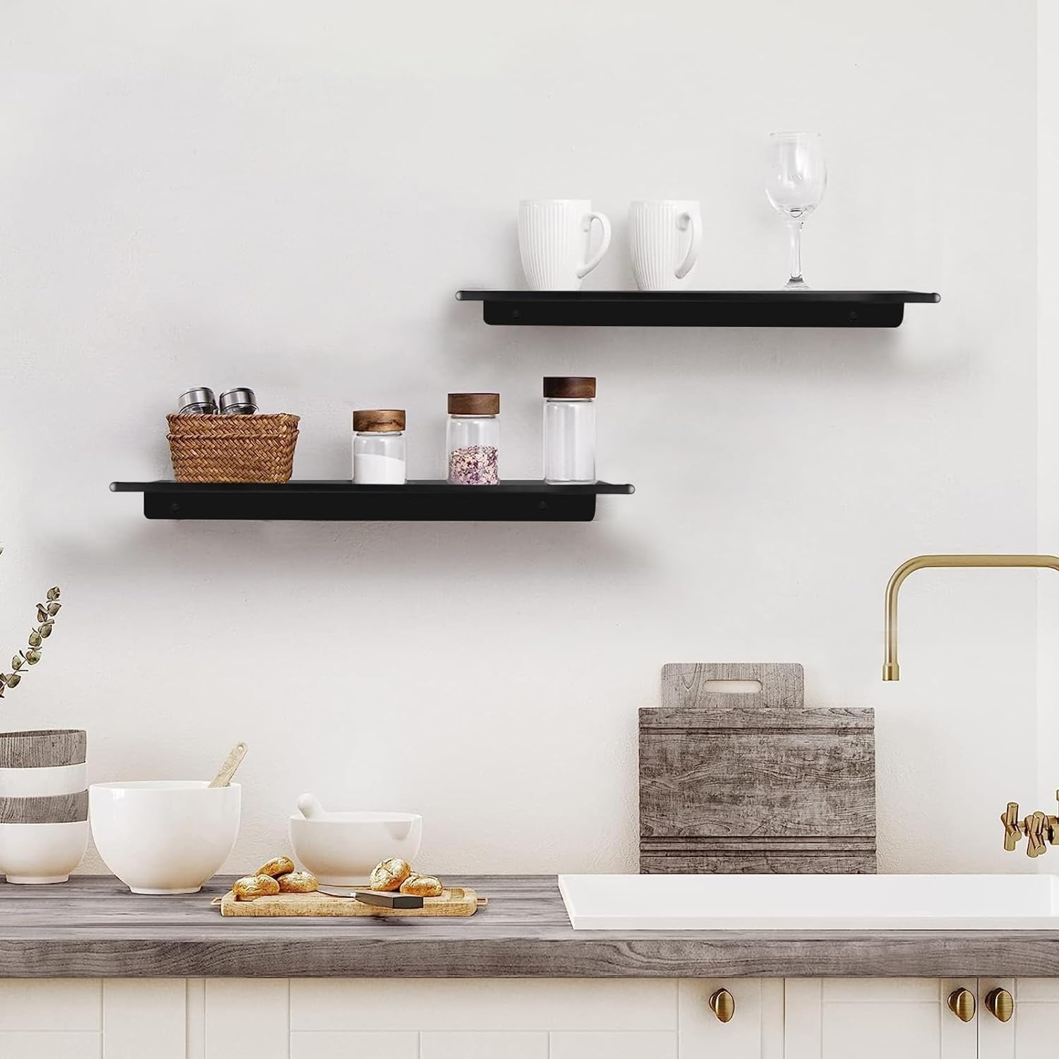 Özellikler: Renk: Mat siyah. Malzeme: 2 mm Metal Malzeme Ölçüler: 40 x 12 x 4 cm Özellikler: Kolay tasarlanmış Paslanmaya Dayanaıklı Metal asma raf, uzun ömürlü, sağlamlık ve dayanıklılık sağlamak için pas ve korozyona dayanıklıdır. Siyah, parlak yüzey paslanmayı etkili bir şekilde önler ve su geçirmez. Duvar raflarını nemli ortamlarda, mutfaklarda ve banyolarda yerleştirebilirsiniz. Asma rafın ön tarafındaki hafif yükseltilmiş ayırma duvarı, estetiği kaybetmeden eşyaların düşmesini önler. Duvar rafları, duvardaki boş alanı en iyi şekilde kullanmanıza yardımcı olur. Çok yönlü depolama alanı yaratır, alan kullanımını iyileştirir, her türlü küçük parçayı saklar ve evinizde daha fazla düzen sağlar. Raf tahtasını banyo rafı, şövale vitrin rafı, mutfak duvar rafı olarak kullanabilirsiniz. Kitap, baharat, resim, hediyelik eşya ve koleksiyon parçalarının saklanması için mükemmeldir. Kurulum yöntemi :Delikli montaj. 1. Montaj pozisyonunu bir kalemle işaretleyin. 2. Bir matkap ile uygun yerlere delikler açın. 3. Germe vidalarını deliklere takın ve duvar raflarını vidalarla duvara sabitleyin. 4. Estetiği artırmak için küçük yuvarlak kapağı vidanın üzerine yerleştirin.